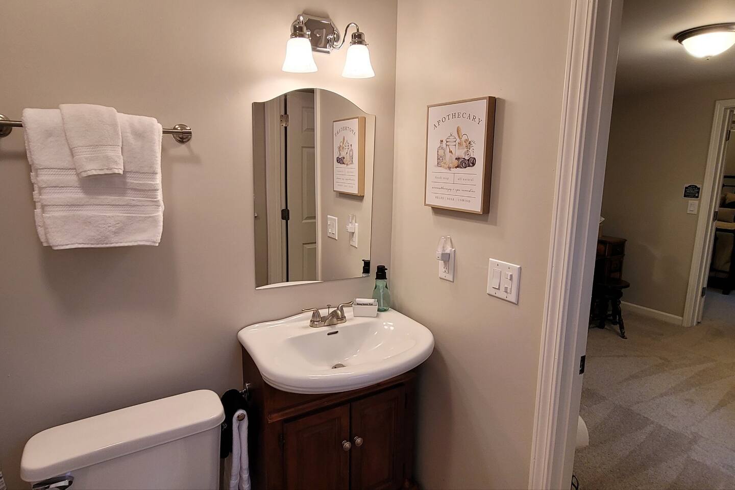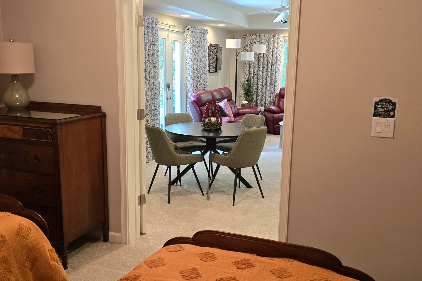 The owners may be in the main house or they may or may not be hosting other out-of-town guests during your stay. The apartment has a private entrance and dedicated parking on the left side of the circular driveway. The apartment has a bonus bedroom with two twin beds. The only bathroom access is through the main bedroom. So the bonus room is best for children traveling with their parents and not adult friends. If traveling with others, you may want to consider utilizing the four-bedroom main house along with or separate from the apartment. Here is the link to the main house for your consideration: https://www.airbnb.com/rooms/841328423390146269