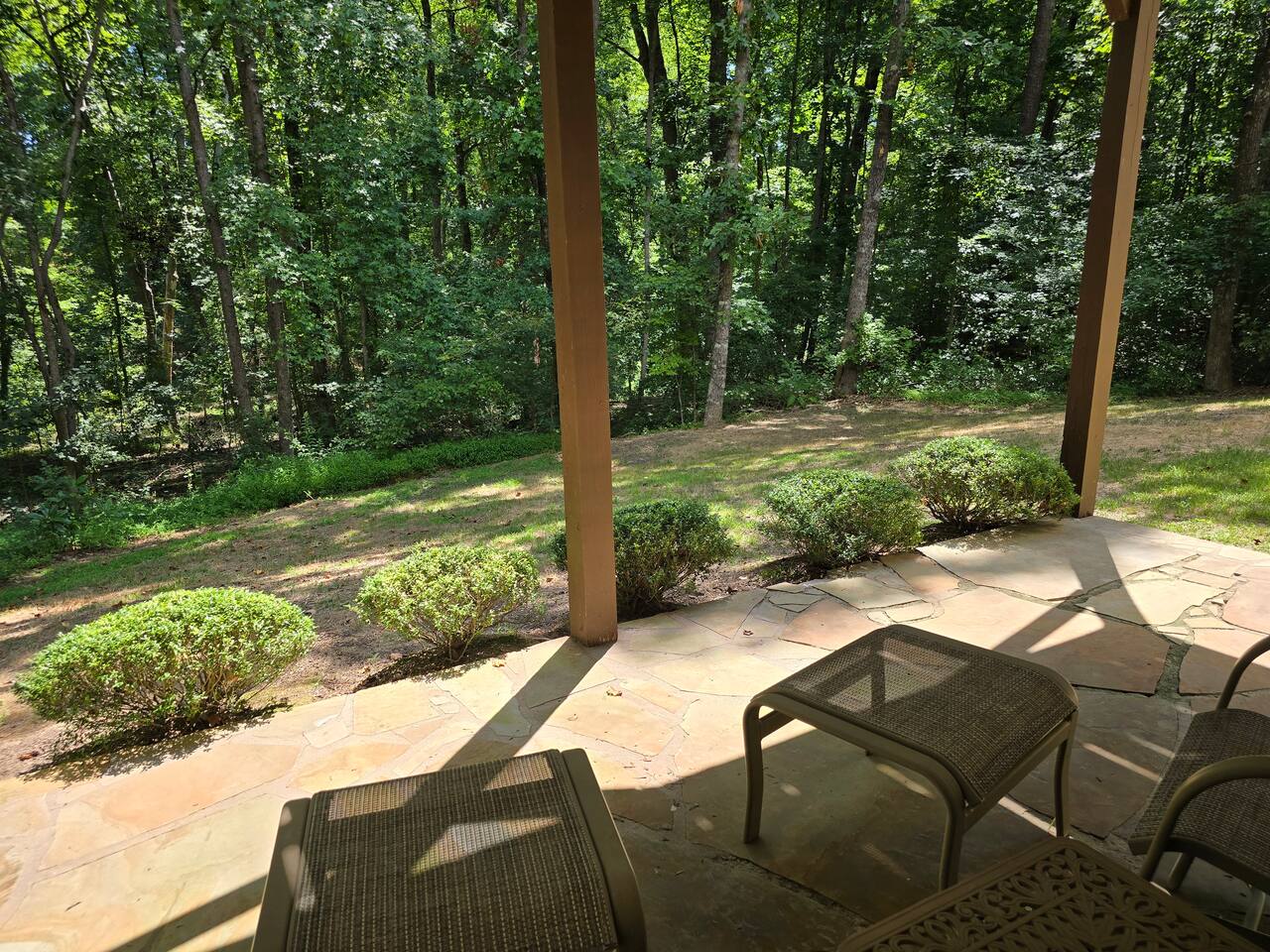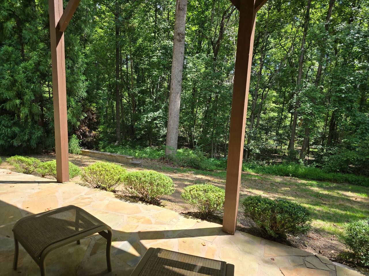 This charming property is located on a cul-de-sac corner near the back of a quiet, well-kept subdivision. The only traffic that comes by is to and from the handful of houses that are beyond this one at the very back of the subdivision. There is is thick woods behind the home with a gentle stream running through. Sitting on the rear patio is great place to enjoy a wonderful connection with nature.....or read a great book.....or eat.....or just sip some wine....or whatever.