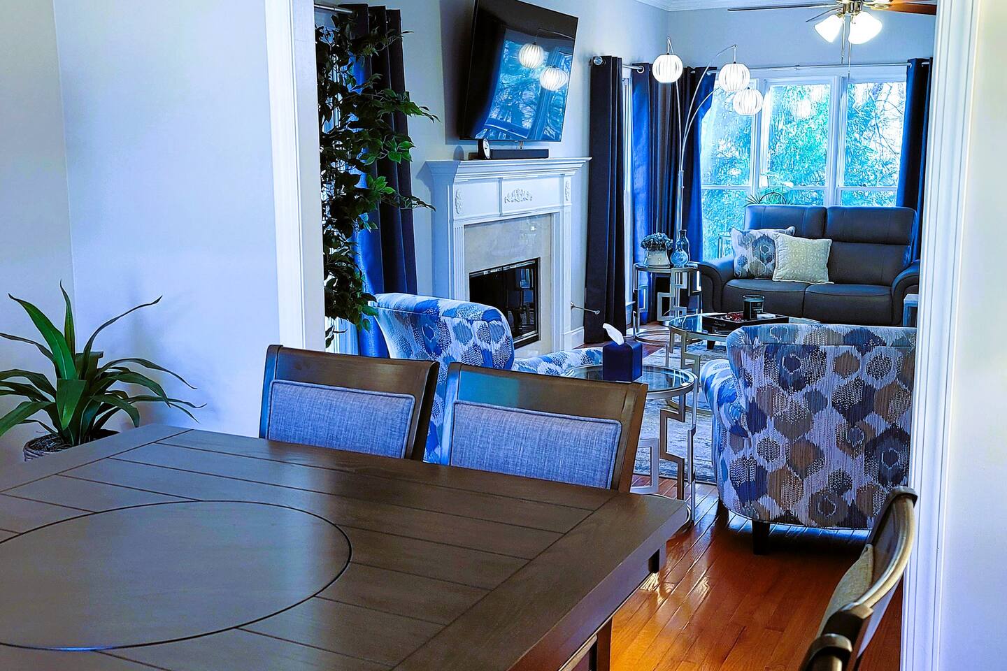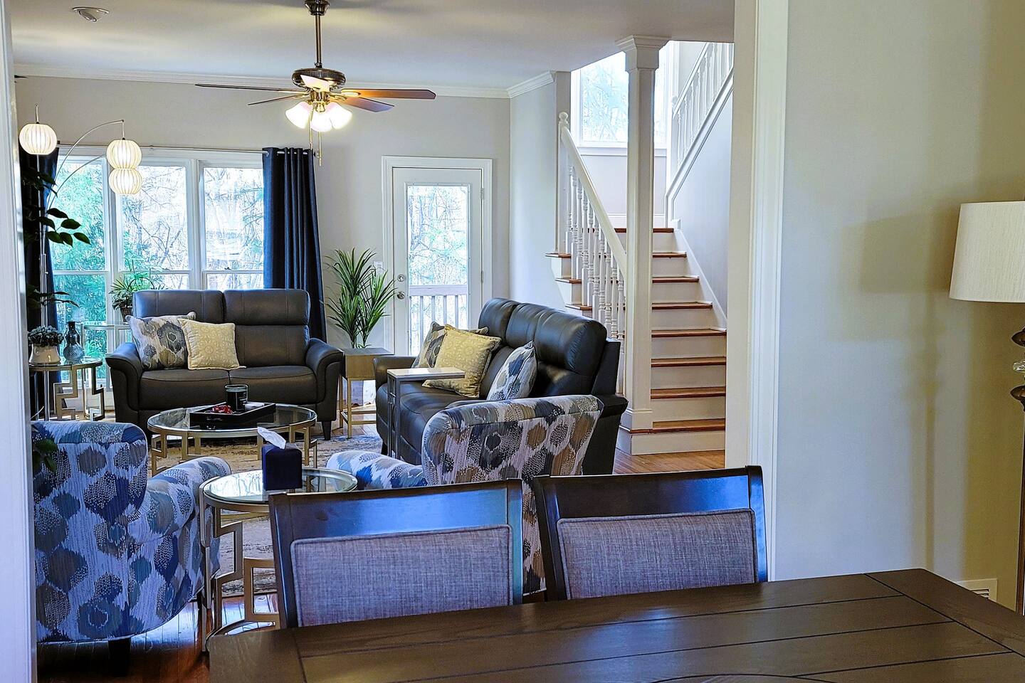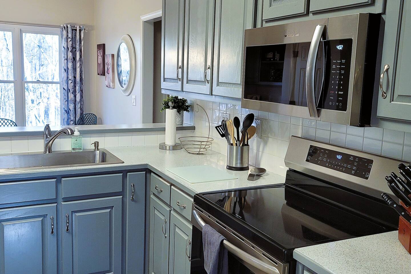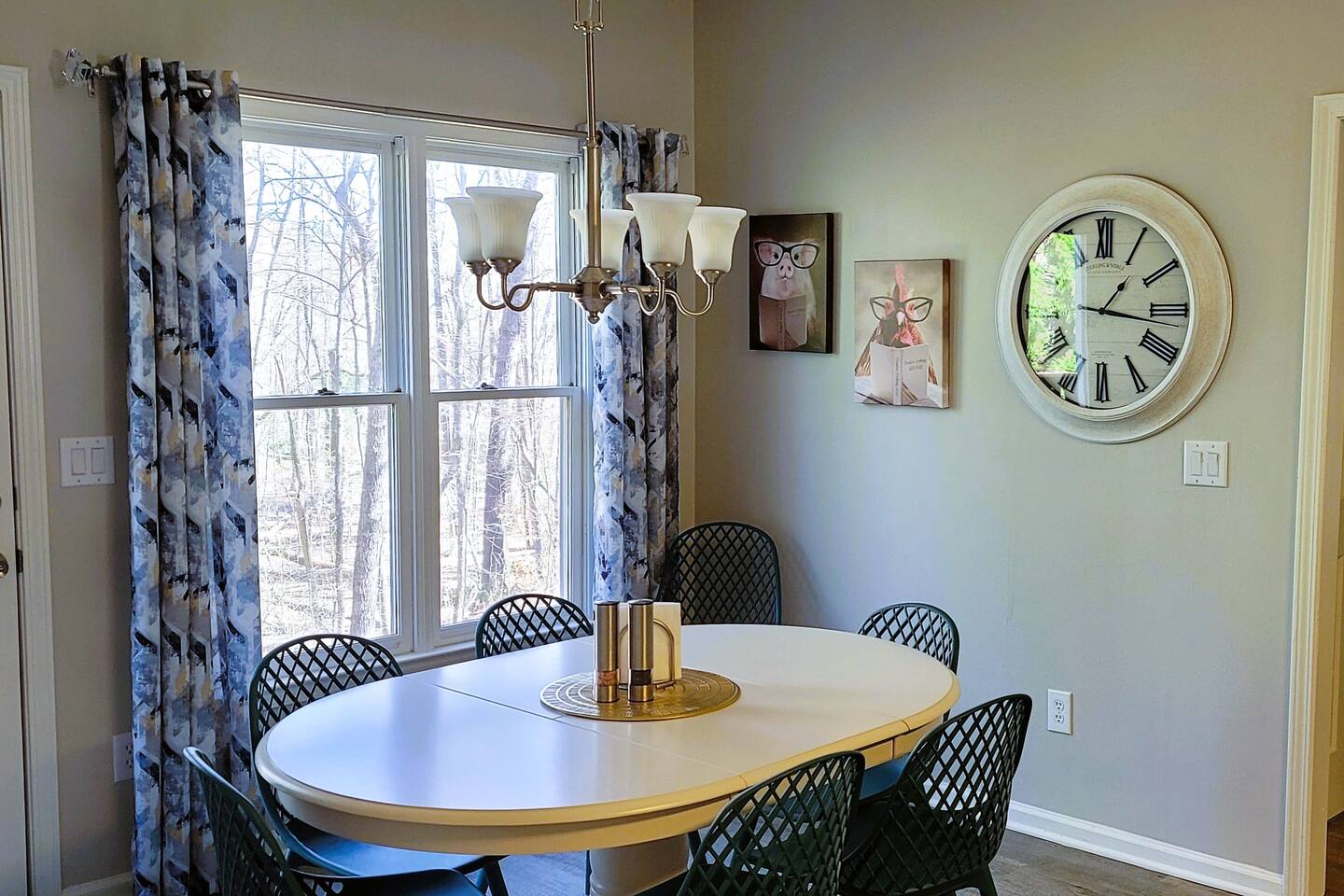 This wonderful home provides you with two full floors of spacious comfort. The first floor is the main hangout area featuring a living room with a gas fireplace for the cooler months. There is a game room stocked with all of our favorites. Of course, there is the kitchen. This one is very well stocked and connects to the eat-in area for casual and the formal dining room for more upscale meals. There is also a convenient half bath. Don't forget the roomy 10' x 20' rear deck overlooking the lovely woods and creek. It features an outdoor dining set and conversation area along with a big ol' barbeque grill. All bedrooms are on the second floor. It features an enormous primary room with a king bed and bath which includes a large office area as well as a cozy sitting/reading space. The "Mint" queen bedroom is attached to the upstairs full bath. It has a wonderful view of the woods behind the house and features a walk-in closet. The other two bedrooms have access to the bathroom from the hallway. The other queen guest room "The Florida Room" is across the hall. It features a beautiful cherrywood bedroom suite and also hosts a walk-in closet. At the end of the hall, you'll find "Kid Central" or the bunk room. It features two awesome bunk bed towers, and a big screen for their viewing fun, or for connecting their game console. There is also a great play area for the little ones at the other end of the room, featuring their very own food truck. Ok, so it's really just a tent, but they'll LOVE it. They'll also find additional toys and playthings in the walk-in closet. There is a garage available for your convenience. That kind of sounds boring compared to the rest of the home. There is a basement apartment that can also be utilized if you have a larger gathering. We do not allow parties as we have neighbors who want to keep the neighborhood pristine and quiet. The basement apartment may or may not be hosting other guests when you come to stay. It has its parking area on the left side of the circular driveway and a private entrance on the left side of the home. Usually, when we stay at the house, we never see the basement guests coming or going. We added soundproofing in the basement ceiling and staircase to hopefully prevent sounds from going between the two units. Here is the link if you would like to utilize that unit too: https://www.airbnb.com/rooms/1069591213665676854