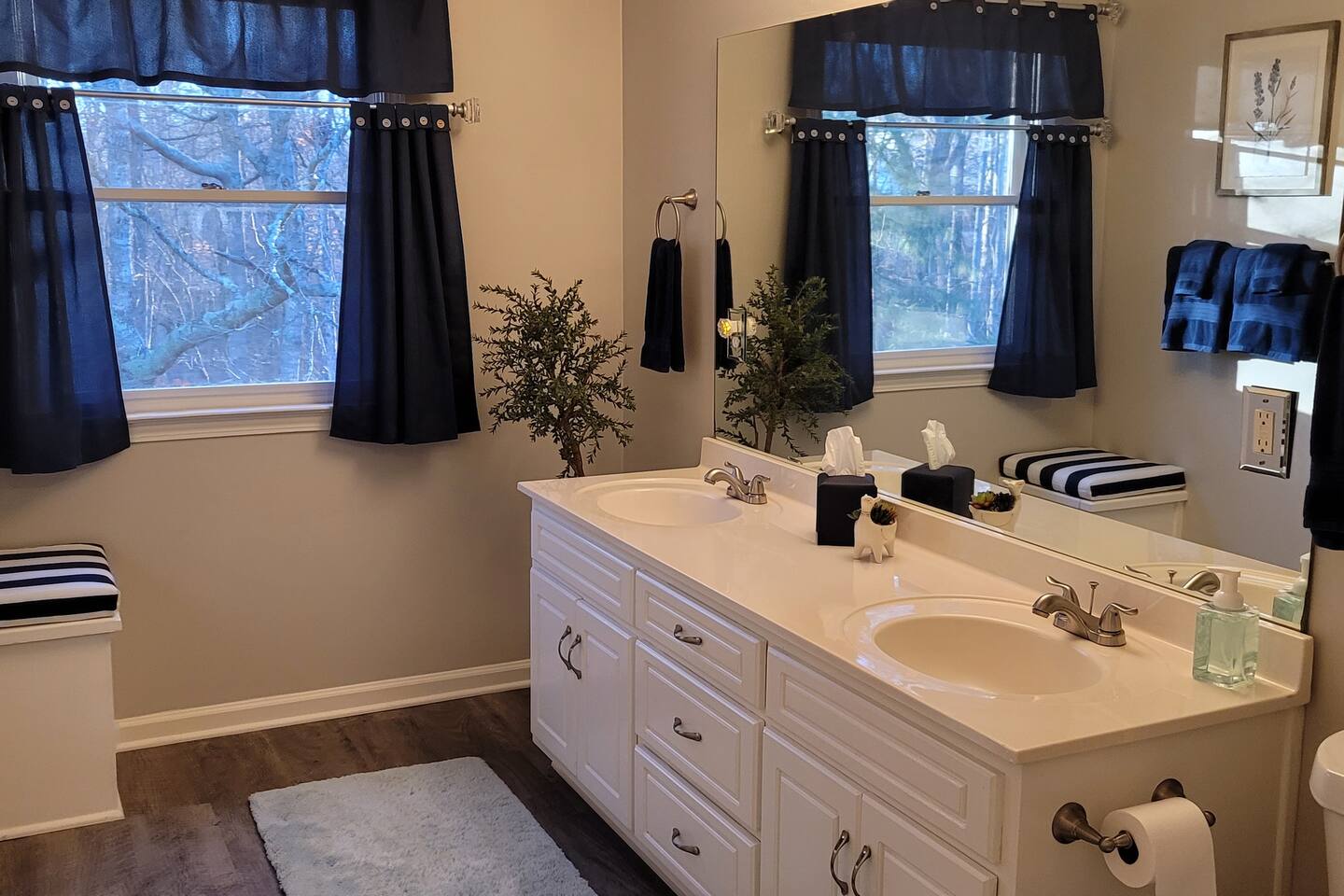 There is a Publix grocery store less than 5 minutes from the house. You will also find oodles of restaurants in any direction you would choose to explore. If you forget any items there is a Target and a Walmart very close by. This property is located at the rear of a very quiet subdivision on a cul-de-sac that backs to trees and a creek. The home is close to shopping, 5 minutes from the Mall of Georgia, restaurants, and 15 minutes from Lake Lanier. It is located conveniently between I-85 and I-985. This home hosts two separate and private units that may or may not be utilized by other guests during your stay. We have added soundproofing between the apartment and the main house floor to help reduce and hopefully eliminate sounds from the other unit. You will love this home away from home. The way the home is built, when we stay there, we rarely see the other guests coming or going.